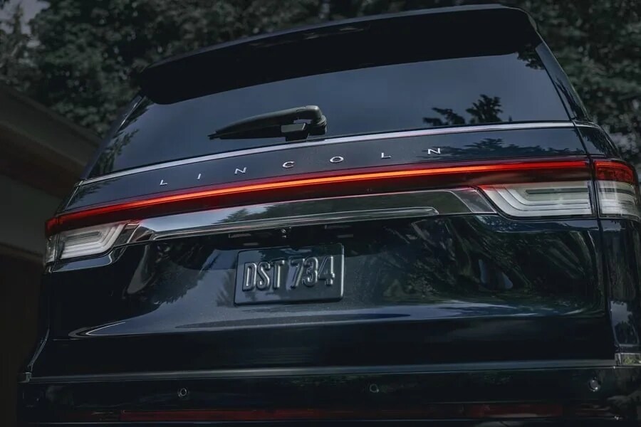 The coast-to-coast rear design of the Lincoln Navigator is elevatedwith brilliant lighting, soothing lines and grounding energy. Thecommanding stance of the vehicle is anchored with a sleek reardesign that achieves harmonious balance. 3D taillamps wrap thetailgate in a warm glow, with a Lincoln Embrace lighting sequencethat bursts from the center like a brilliant sun and spreads its raysacross the horizon.
