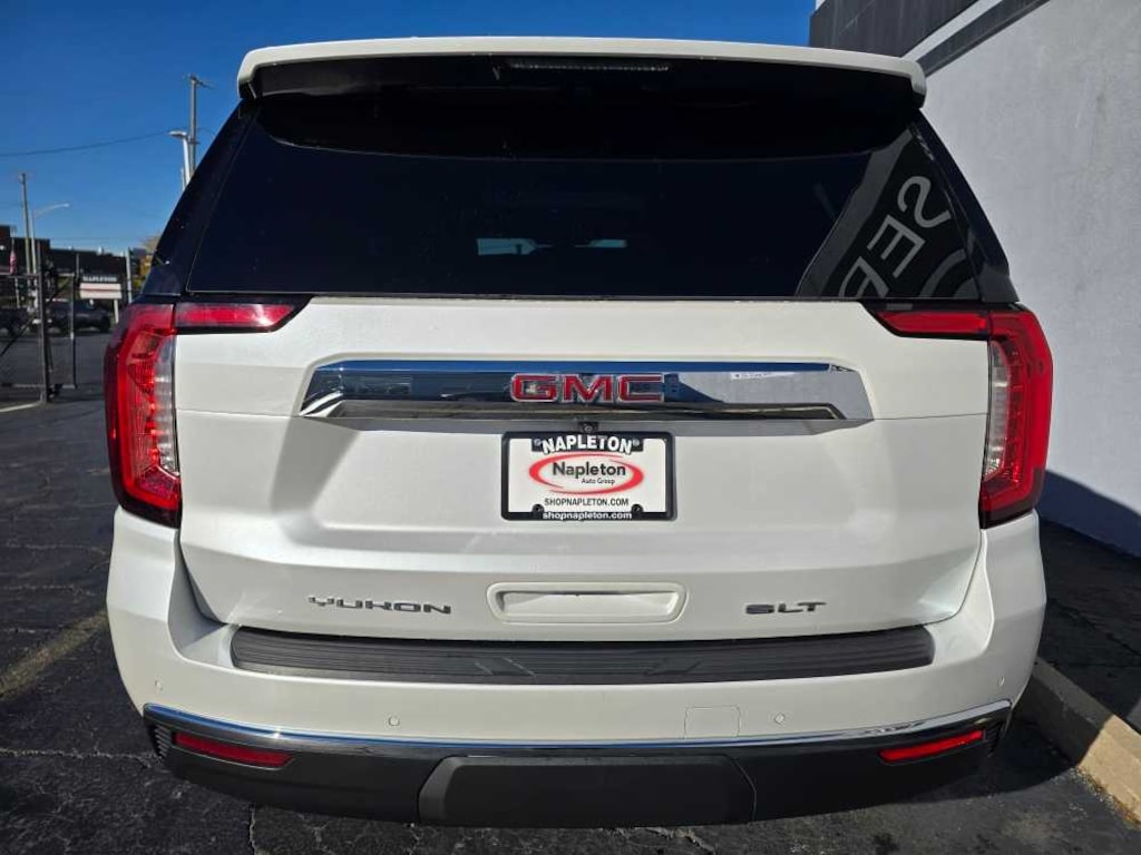 SLT LUXURY PACKAGE includes (UV2) HD Surround Vision, (UKK) Rear Pedestrian Alert, (A45) memory settings, (DXR) outside heated power-adjustable, power-folding, body-color mirrors with driver-side auto-dimming and integrated turn signal indicators, (N38) power tilt and telescopic steering column, (KI3) heated steering wheel, (KA6) second row outboard heated seats, (ATT) second row power 60/40 split-folding bench seats and (AS8) third row power 60/40 split-folding bench seats Vehicles built prior to December 6, 2021, include heated steering wheel. Certain vehicles built on or after December 6, 2021, will be forced to include (00G) Not Equipped with Heated Steering Wheel, which removes heated steering wheel. Vehicles built prior to March 14, 2022 and after April 17, 2022 include heated rear, SUNROOF, POWER PANORAMIC, DUAL-PANE tilt-sliding with express-open and close and power sunshade, AUDIO SYSTEM, 10.2 DIAGONAL PREMIUM GMC INFOTAINMENT SYSTEM WITH GOOGLE BUILT-IN includes color touch-screen, multi-touch display, AM/FM stereo, Bluetooth® streaming audio for music and most phones; featuring wireless Android Auto® and Apple CarPlay® capability for compatible phones, advanced voice recognition, in-vehicle apps, personalized profiles for infotainment and vehicle settings (STD), ENGINE, 5.3L ECOTEC3 V8 with Dynamic Fuel Management, Direct Injection and Variable Valve Timing, includes aluminum block construction (355 hp [265 kW] @ 5600 rpm, 383 lb-ft of torque [518 Nm] @ 4100 rpm) (STD), TRANSMISSION, 10-SPEED AUTOMATIC electronically controlled with overdrive, includes Traction Select System including tow/haul (STD). AutoCheck One Owner