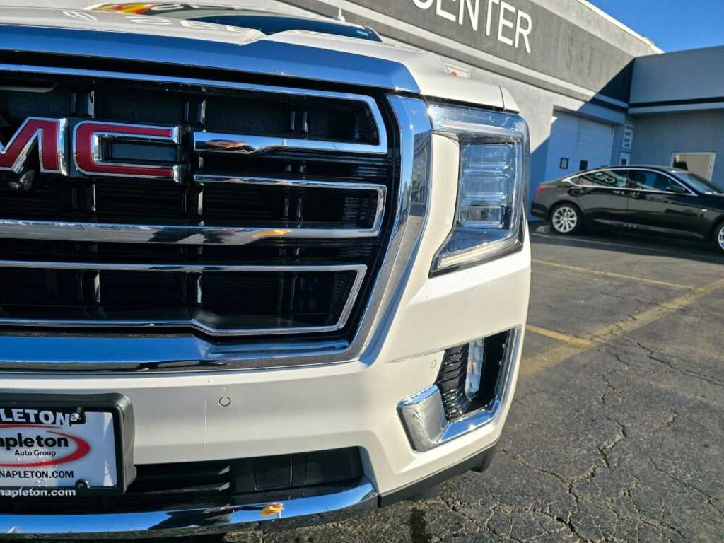 1-OWNER TRADE-IN, HEATED/COOLED FRONT LEATHER SEATS, HEATED 2ND-ROW SEAT, POWER FOLD 3RD-ROW SEAT, WIRELESS CHARGING PAD, LANE KEEPING, BLIND SPOT MONITOR, 360 CAMERA, FRONT AND REAR SENSORS, NAVIGATION, PANORAMIC ROOF, REMOTE START, RECEIVER HITCH KEY FEATURES INCLUDELeather Seats, Navigation, 4x4, Power Liftgate, Rear Air GMC SLT with White Frost Tricoat exterior and Dark Walnut/Slate interior features a 8 Cylinder Engine with 355 HP at 5600 RPM*. OPTION PACKAGESSLT LUXURY PACKAGE includes (UV2) HD Surround Vision, (UKK) Rear Pedestrian Alert, (A45) memory settings, (DXR) outside heated power-adjustable, power-folding, body-color mirrors with driver-side auto-dimming and integrated turn signal indicators, (N38) power tilt and telescopic steering column, (KI3) heated steering wheel, (KA6) second row outboard heated seats, (ATT) second row power 60/40 split-folding bench seats and (AS8) third row power 60/40 split-folding bench seats Vehicles built prior to December 6, 2021, include heated steering wheel. Certain vehicles built on or after December 6, 2021, will be forced to include (00G) Not Equipped with Heated Steering Wheel, which removes heated steering wheel. Vehicles built prior to March 14, 2022 and after April 17, 2022 include heated rear, SUNROOF, POWER PANORAMIC, DUAL-PANE tilt-sliding with express-open and close and power sunshade, AUDIO SYSTEM, 10.2 DIAGONAL PREMIUM GMC INFOTAINMENT SYSTEM WITH GOOGLE BUILT-IN includes color touch-screen, multi-touch display, AM/FM stereo, Bluetooth® streaming audio for music and most phones; featuring wireless Android Auto® and Apple CarPlay® capability for compatible phones, advanced voice recognition, in-vehicle apps, personalized profiles for infotainment and vehicle settings (STD), ENGINE, 5.3L ECOTEC3 V8 with Dynamic Fuel Management, Direct Injection and Variable Valve Timing, includes aluminum block construction (355 hp [265 kW] @ 5600 rpm, 383 lb-ft of torque [518 Nm] @ 4100 rpm) (STD), TRANSMISSION, 10-SPEED AUTOMATIC electronically controlled with overdrive, includes Traction Select System including tow/haul (STD). AutoCheck One Owner Horsepower calculations based on trim engine configuration. Please confirm the accuracy of the included equipment by calling us prior to purchase. ...